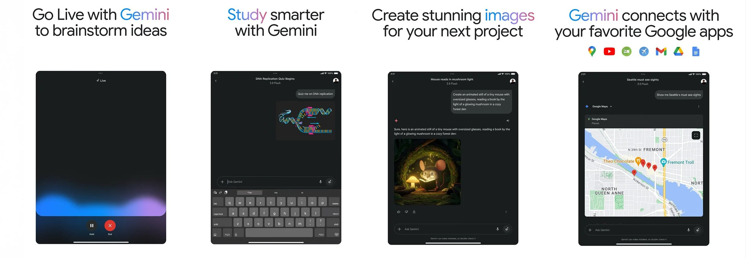 It supports Split View, letting you run Gemini alongside other apps for multitasking on the larger screen.